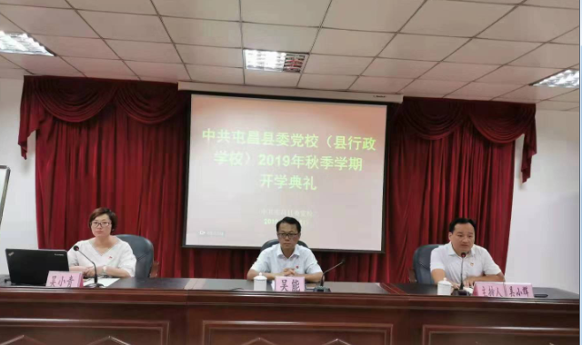9月25日上午,屯昌县委党校(县行政学校)举行2019年秋季学期开学典礼,屯昌县委常委、组织部长吴能出席开学典礼并作动员讲话,屯昌县委党校常务副校长吴小辉主持开学典礼。屯昌县委党校(县行政学校)全体教职工,及屯昌县新发展党员“不忘初心、牢记使命”专题培训班的学员,共160余人参加开学典礼。