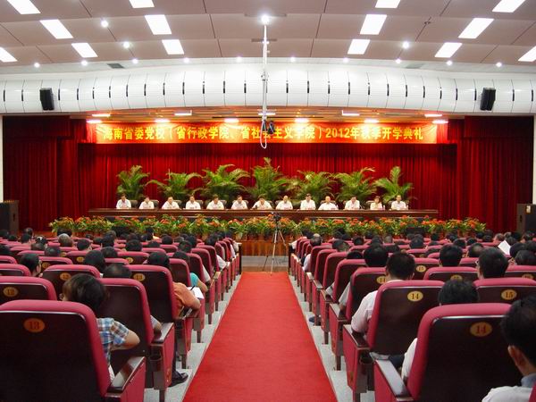 有关部门负责人,省委党校(省行政学院、省社会主义学院)领导班子成员,校(院)教职员工,2012年党校系统师资培训班,2012年中青年干部党性教育专题培训班,2012年党外干部培训班,中央党校干部培训学院海南分院2012年经济管理研究班的成员共300余人参加了开学典礼。
