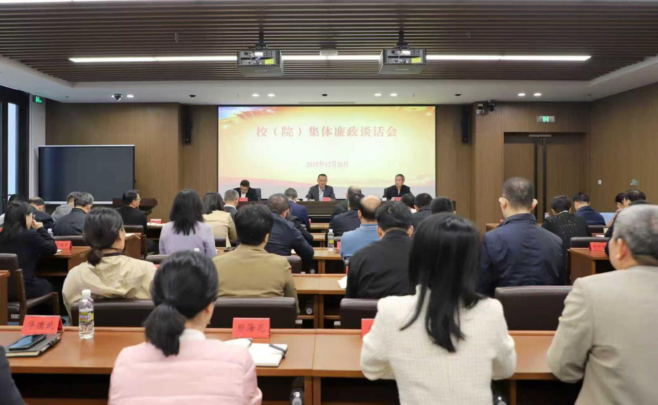 2025年12月26日上午,校(院)召开集体廉政谈话会,邀请省纪委监委驻省委组织部纪检监察组副组长袁辉祥进行集体廉政谈话。常务副校长(副院长)王绍文出席会议并讲话。副校长(副院长)刘利波主持会议。