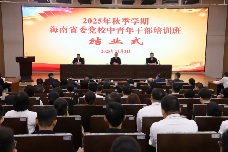 12月2日上午,2025年秋季学期海南省委党校中青班结业式在学术报告中心东坡厅举行,常务副校长(副院长)王绍文出席并讲话。省委组织部副部长杨晓刚,省委党校(省行政学院)副校长(副院长)文榛、二级巡视员黎伟珠出席,副校长(副院长)刘利波主持结业式。