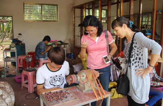 考察铁匠村花梨工艺品加工