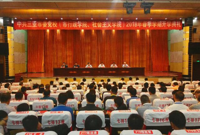 三亚市委组织部、市委统战部、市人社局等有关部门领导出席开学典礼,校(院)全体教职工和市直单位科级干部学习贯彻党的十九大精神专题培训班学员约300人参加开学典礼。