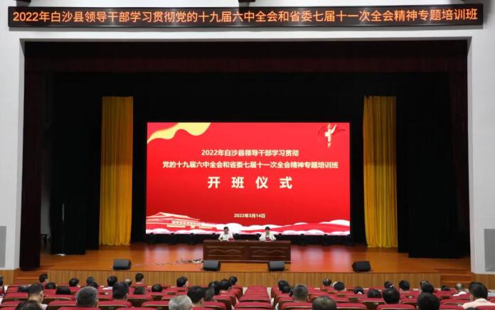 3月14日至18日,由白沙县委组织部和白沙县委党校联合举办的2022年白沙县领导干部学习贯彻党的十九届六中全会和省委七届十一次全会精神专题培训班举行。白沙县委书记邓伟强为学员作专题授课。白沙县委常委、组织部部长、党校校长李锋出席开班仪式并作动员讲话。各县直单位领导班子成员,各乡镇领导班子成员、纪委专职副书记,“两中心”主任,执法中队中队长,共405人参加培训。